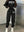 Completo da donna in due pezzi, composto da maglione oversize e pantaloni in felpa grigio melange
