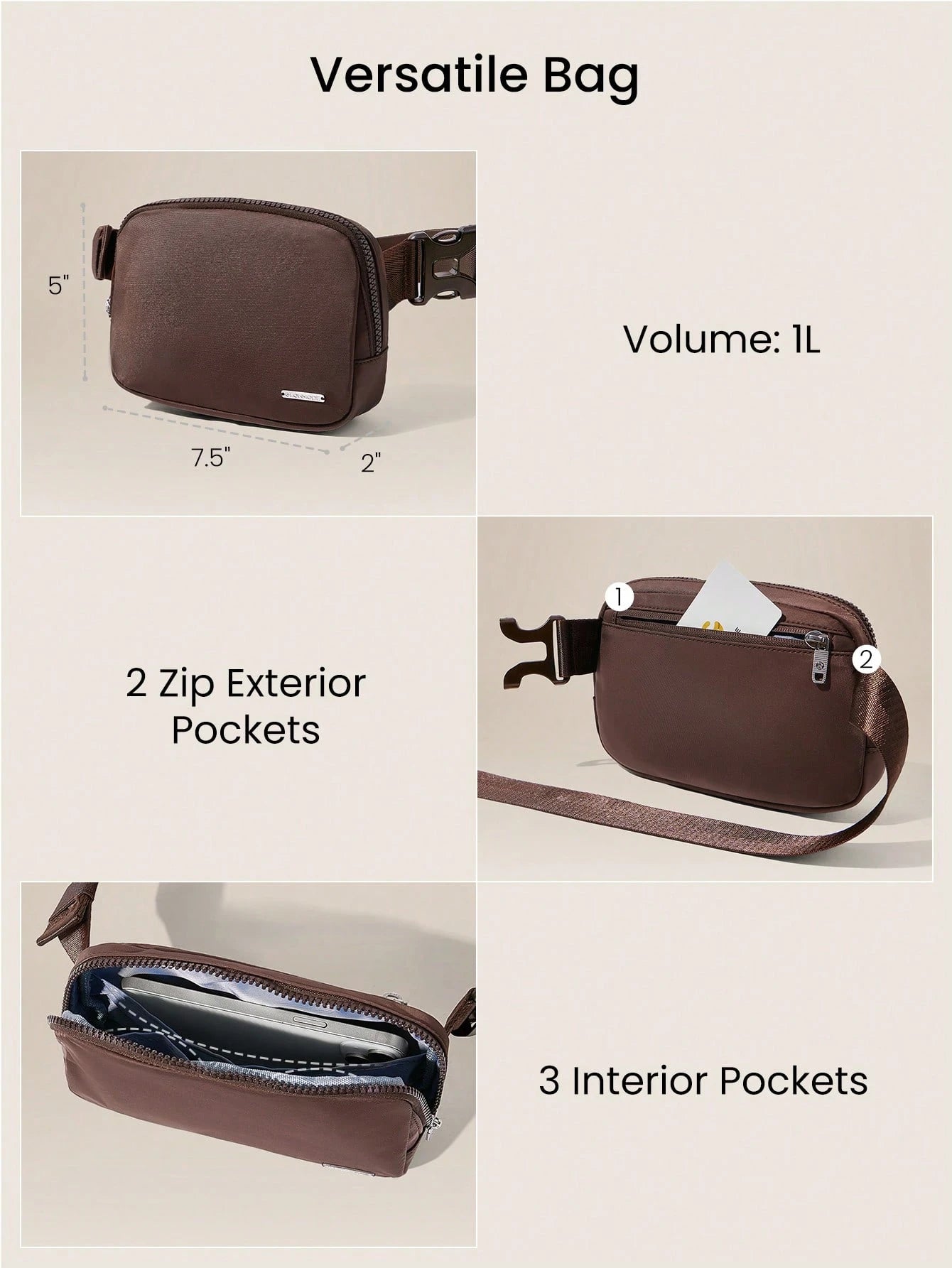 Borsa da vita con cerniera, impermeabile, con tracolla regolabile, adatta per autunno e inverno
