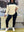 Set da donna taglie forti in autunno, a righe bianche e nere, composto da maglietta a righe e leggings