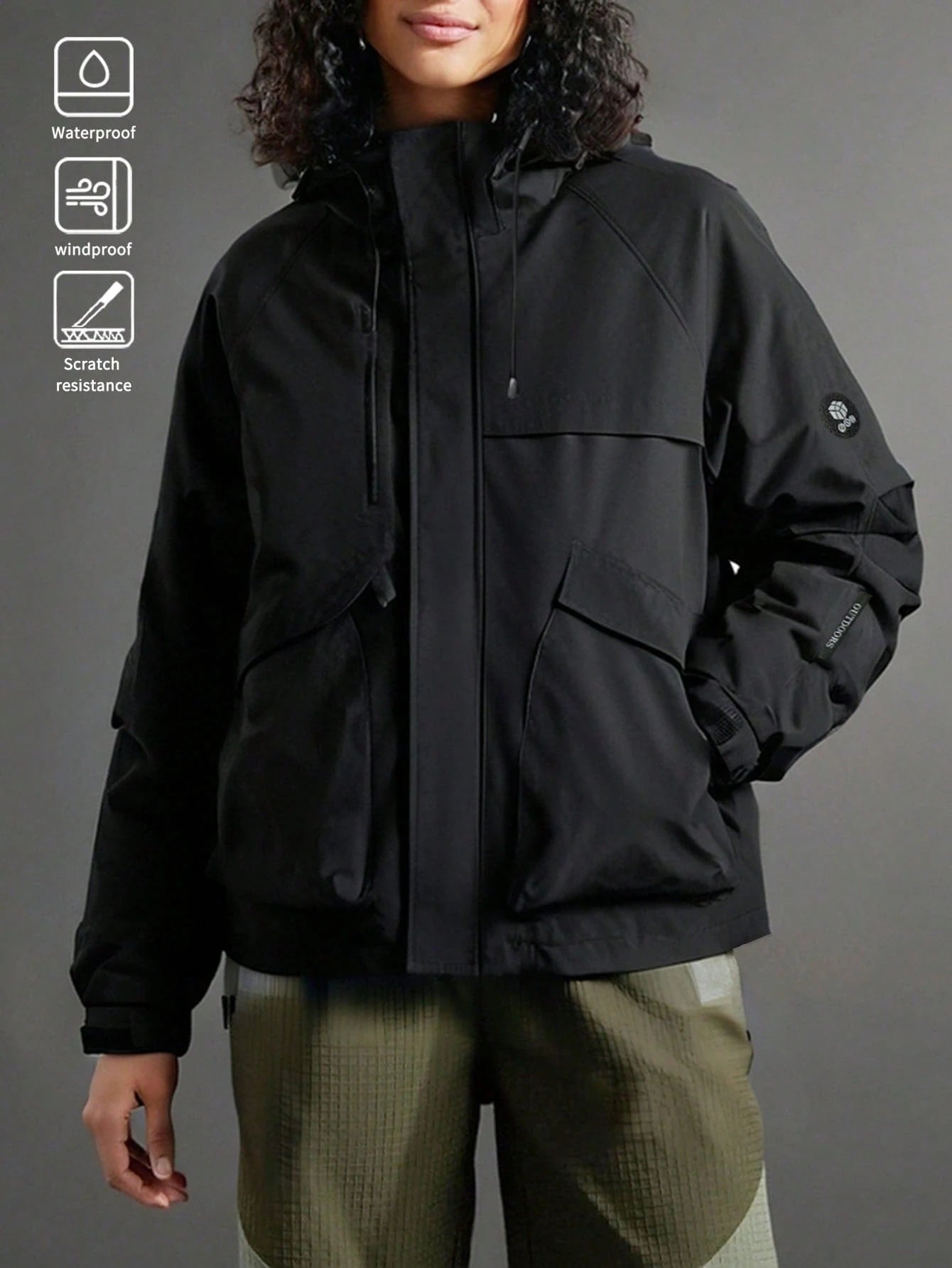 Giacca con cappuccio impermeabile da donna per uso esterno